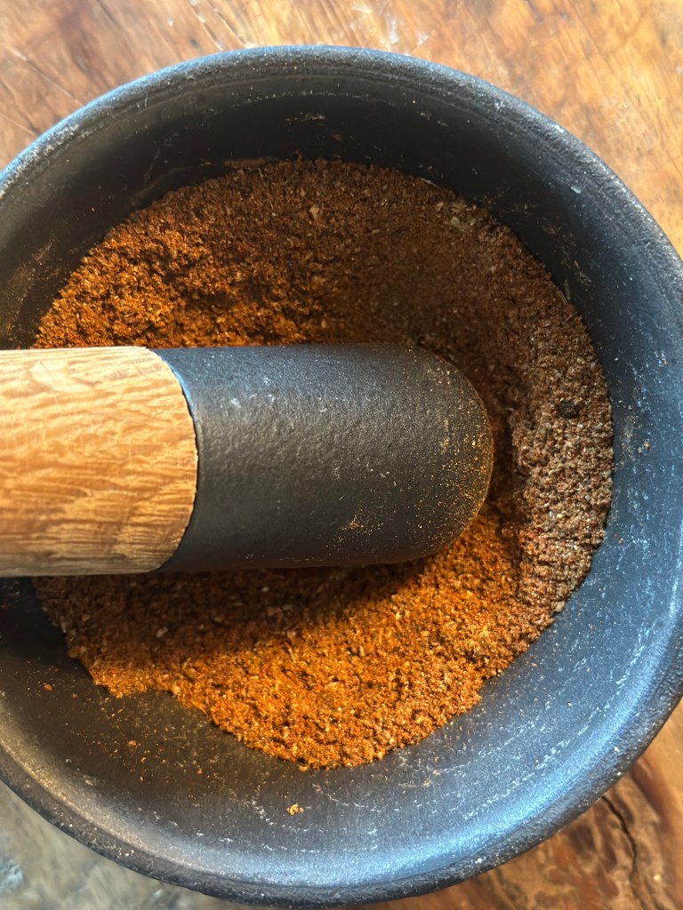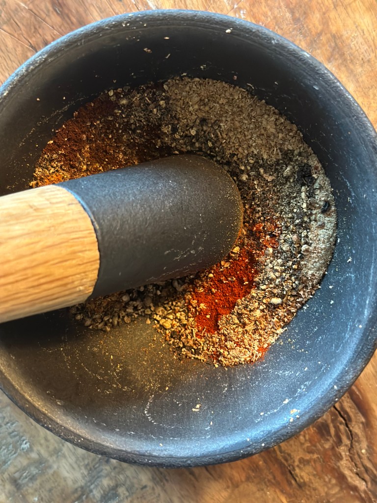 Alle krydderierne skal være fint kværnet og blandes derefter godt. Jeg blander altid lidt ekstra, så jeg har den klar til brug.