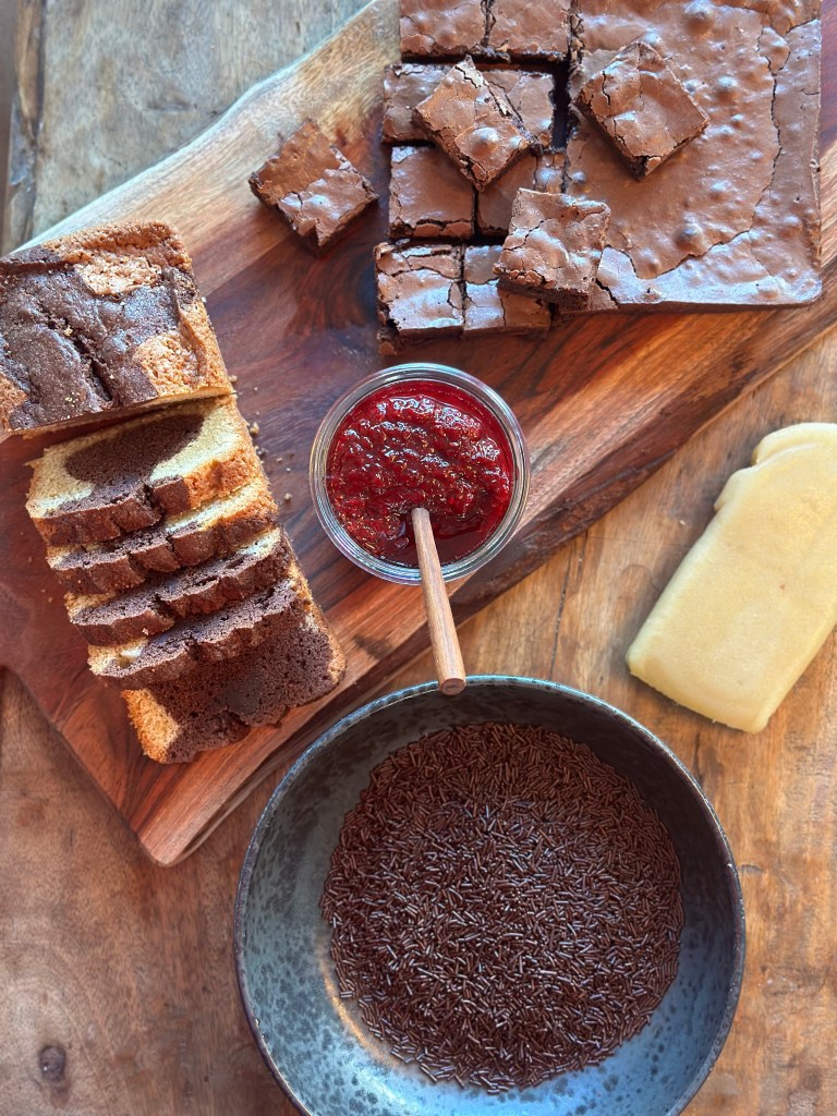 (Marmorkage og Brownie skal tilsammen udgøre 900-1000 gram)