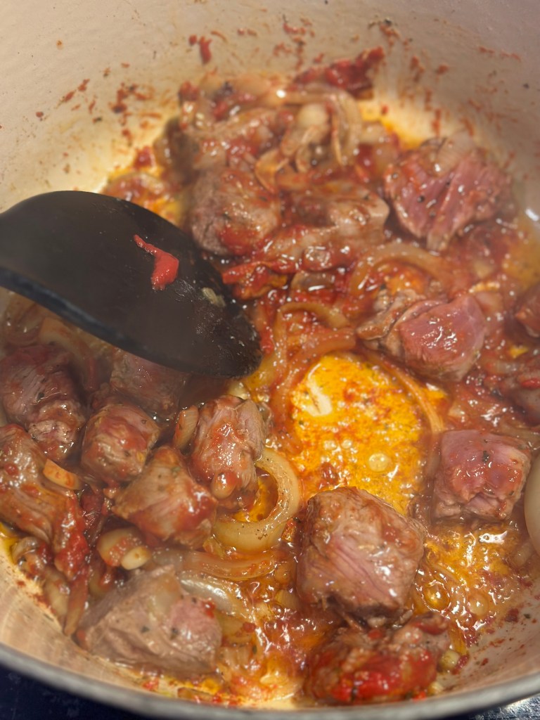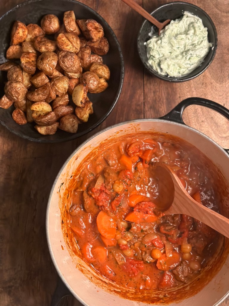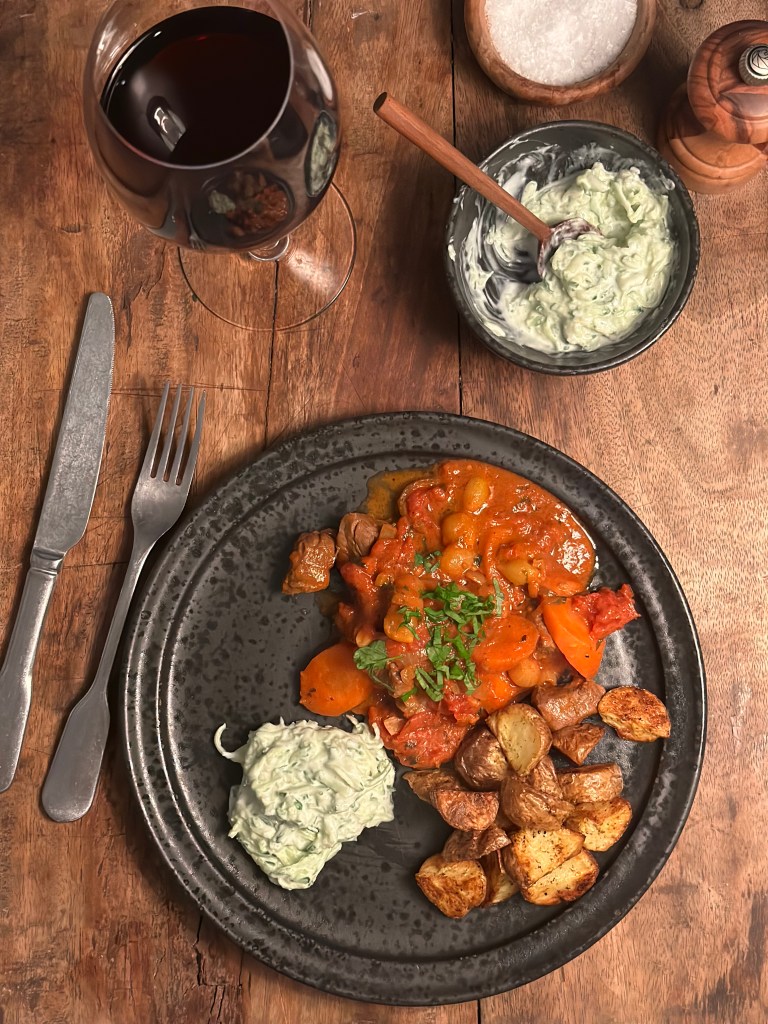 Alle lande har deres klassiske simre gryderet – og mange af dem har faktisk også de samme ingredienser. Stifádo er ingen undtagelse, og det er egentlig kun kanel og nellikerne som gør forskellen – og så vælger jeg i min version at bruge lamme mørbrad.