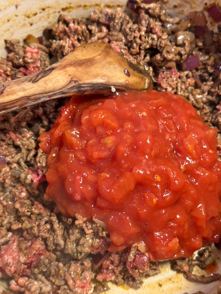 - 1 dåse flåede tomater