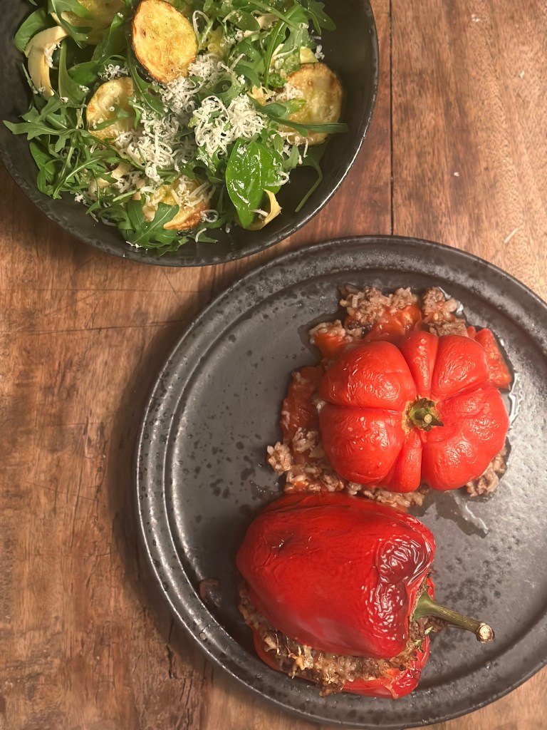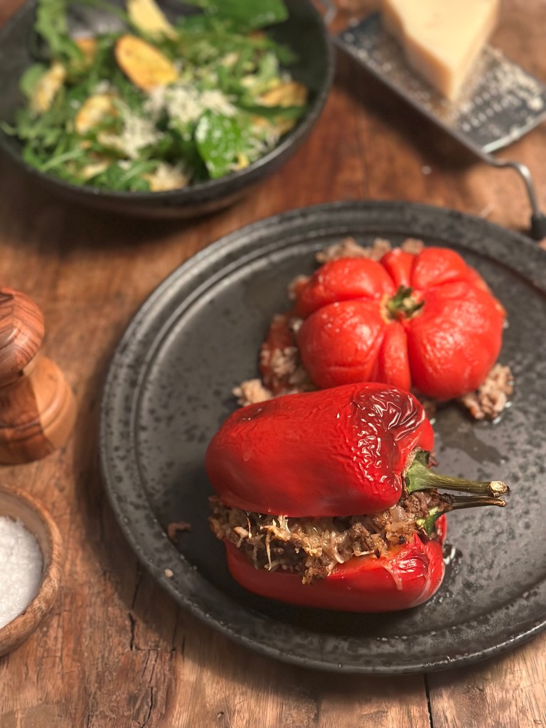 Fyldte peberfrugter eller tomater har vi set mange gange, men at de kommer fra det græske køkken, kommer vist som en overraskelse. Man kan jo smage til med de krydderier som man ønsker, men nedenstående er de klassiske græske.