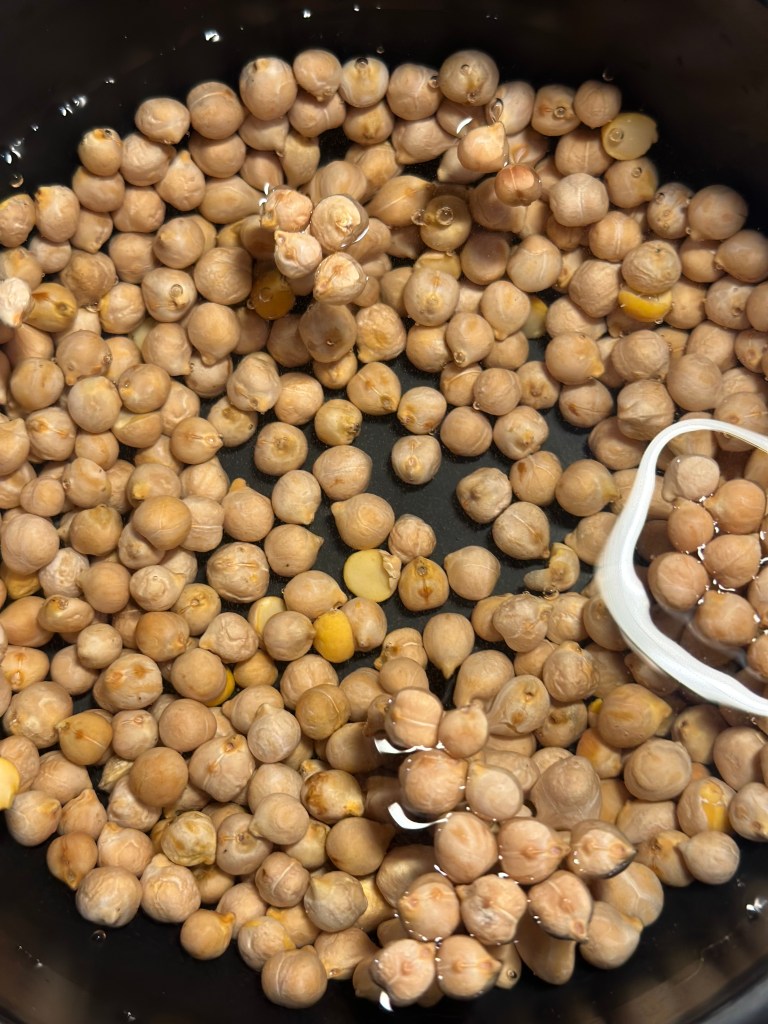 Jeg vælger Ingrid ærter fra Bornholm, således de ikke skal transporteres så langt. Jeg lægger dem først i vand, herefter koger, og herefter bager dem i ovnen med hvidløg. Se opskriften her !