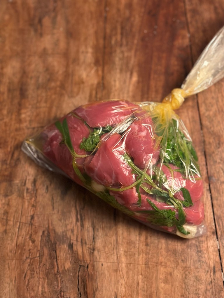 En klassisk Caesar er uden kød – der er heller ikke kylling eller bacon i. Det er valg som er kommet til. I denne version, bruger jeg lammemørbrad, som jeg aftenen inden har marineret i olivenolie, frisk persille, frisk rosmarin og hvidløg. Jeg tilsætter ikke salt og peber i marinaden. Jeg steger kødet på høj varme, således det får en sprød overflade og kernetemperaturen må Max. være 58 grader, hvor efter det skal hvile i 5-10 minutter. Tilsæt salt og friskkværnet peber når du steger. Husk at afpudse mørbraden. Jeg skærer den i små stykker.