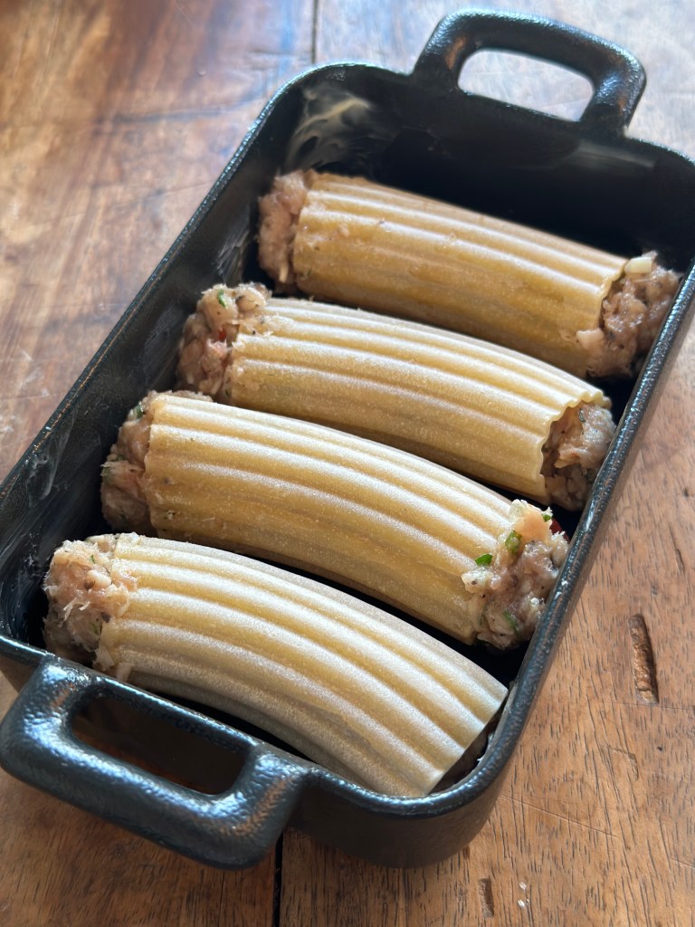 Lange rørformede store pastaer, fyldes og bages. Traditionelt fyldt med kødsauce eller ricotta og spinat. Pastaen laves af mel og æg. Rørene fyldes typisk med kød- eller grøntsagssauce og toppes med tomatsauce og ost, hvorefter retten bages i ovnen.