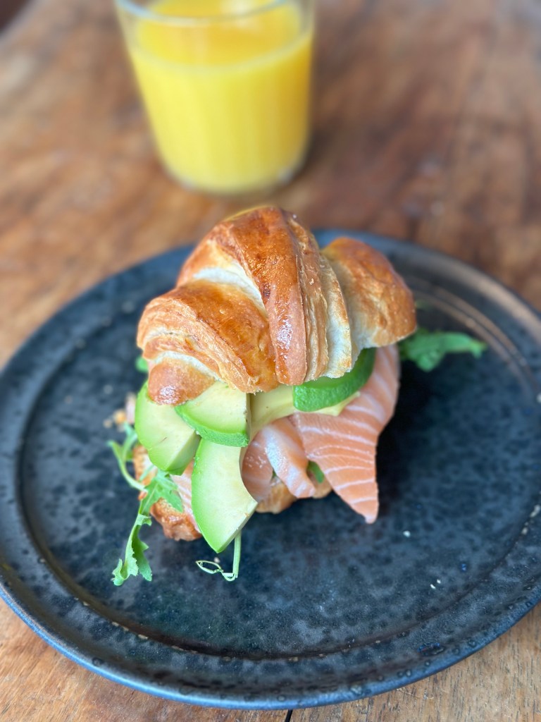 - Laks, avokado, rucola og smurt med træffel smørost