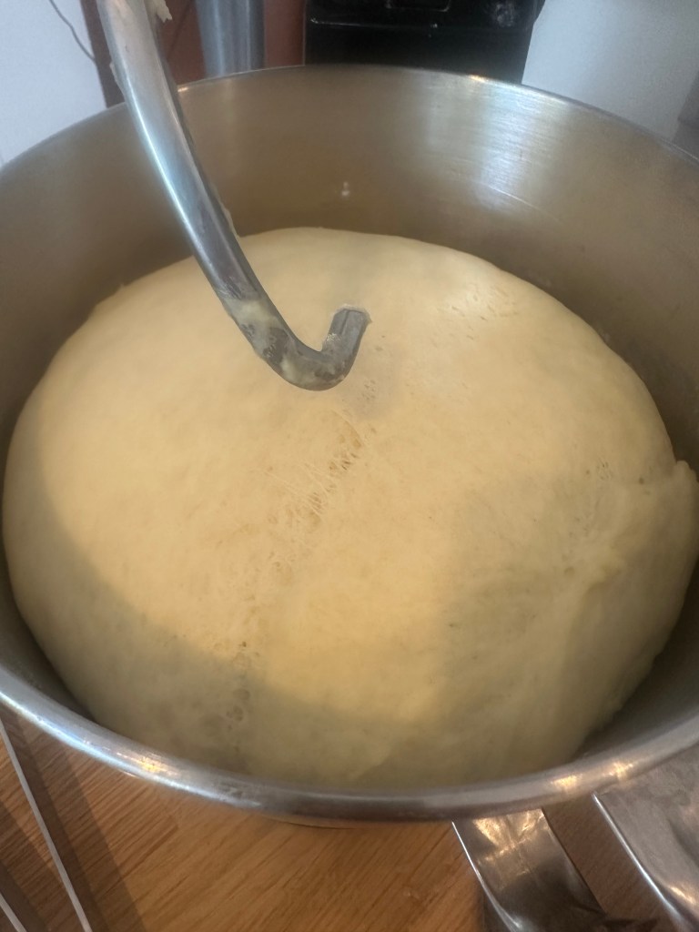 Dejen samles ved først at vende alle de tørre elementer og herefter alle de våde – for til sidst at samle dem til een. Det er vigtigt at bruge en røremskine, og lad køre dejen i mindst 8-10 minutter. Den skal herefter hæve i 90 minutter.