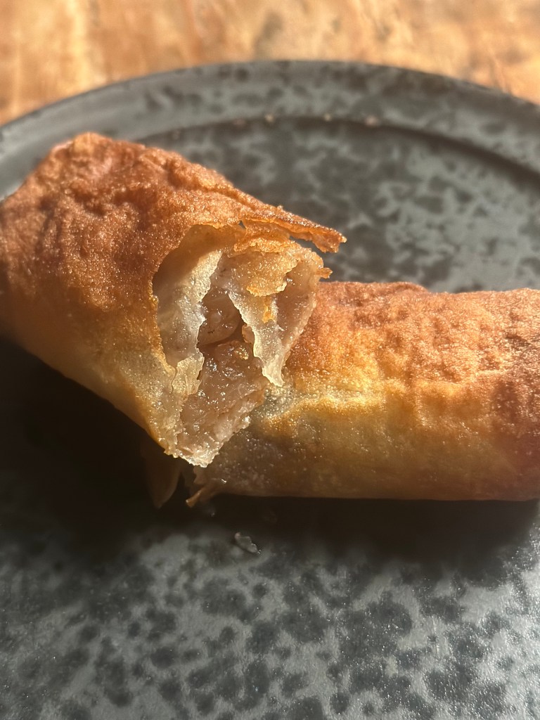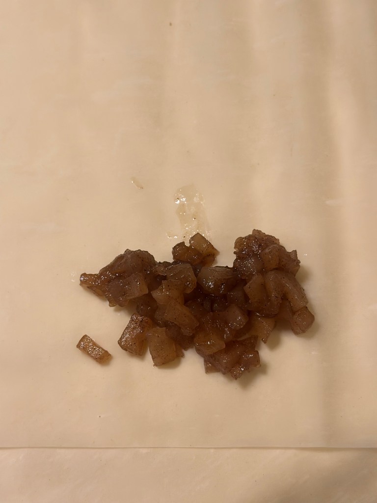 Jeg tager filodejen og folder blot som en forårsrulle. Kommer i risolie til de er gyldne – ikke for varm olie.