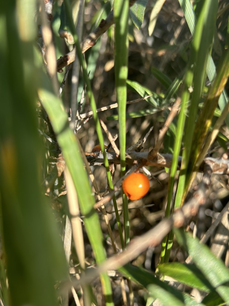 Havtorn er i hele landet og vokser tæt på vandet – vi fandt de sidste på sæson – som egnetlig høstes i august ved Sandvig på Bornholm.