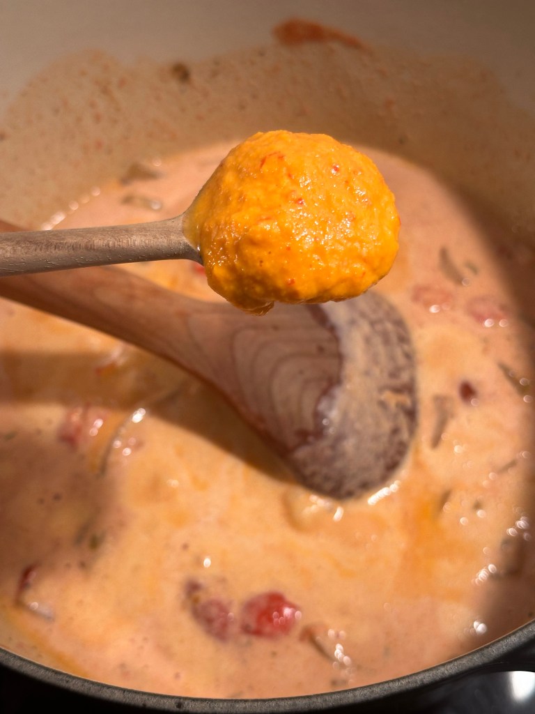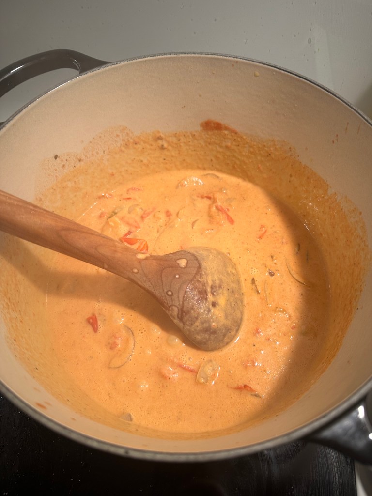 Jeg bruger “Mamas chilipaste” da den indeholder både hvidløg, ingefær og chili som er med i den oprindelige ret. De øvrige krydderier som er autentiske i retten, gemmer sig alle sammen i min version af Garam Masala.