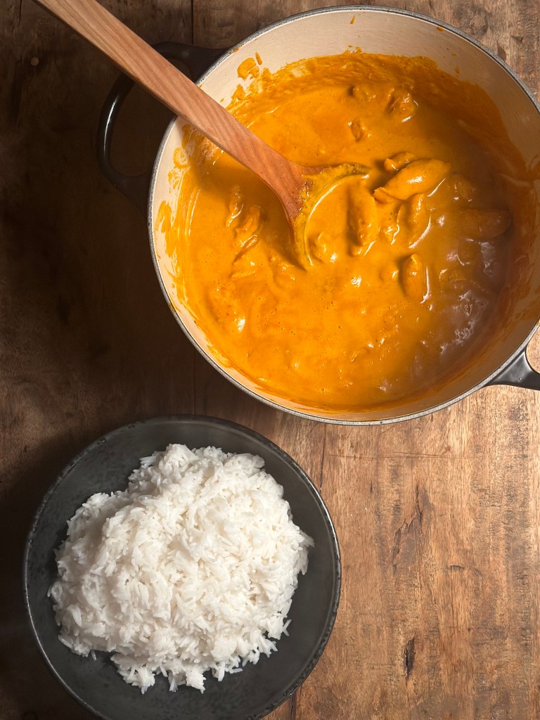 Butter Chicken (også kendt som Murgh Makhani) er en populær, cremede kyllingeret med rødder i det indiske køkken. Den har sin oprindelse i Indien, hvor den blev skabt i Delhi i 1950’erne af en kok på restauranten Moti Mahal. Den blev udviklet som en metode til at bruge overskydende tandoori-kylling ved at tilføje tomat, smør og fløde. Butter Chicken har en mild, sød og cremet smag, hvor smør (ghee) og fløde spiller en hovedrolle.