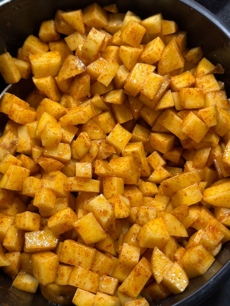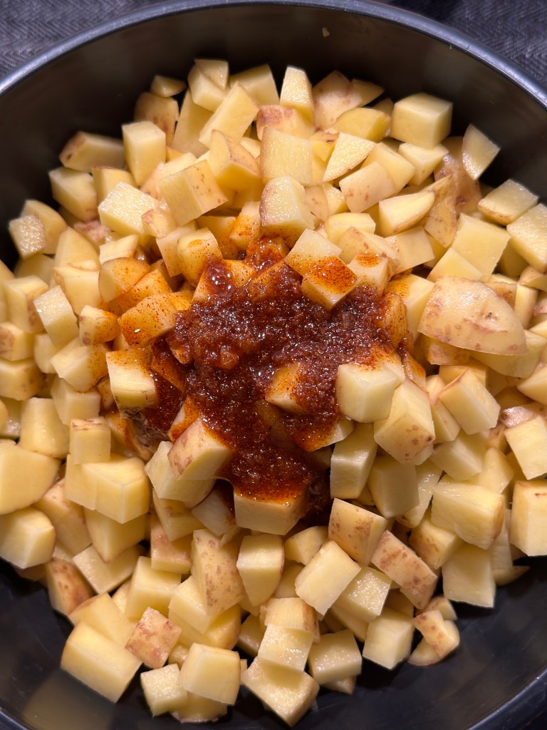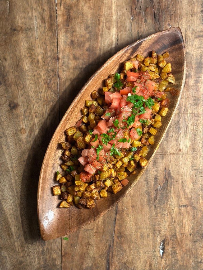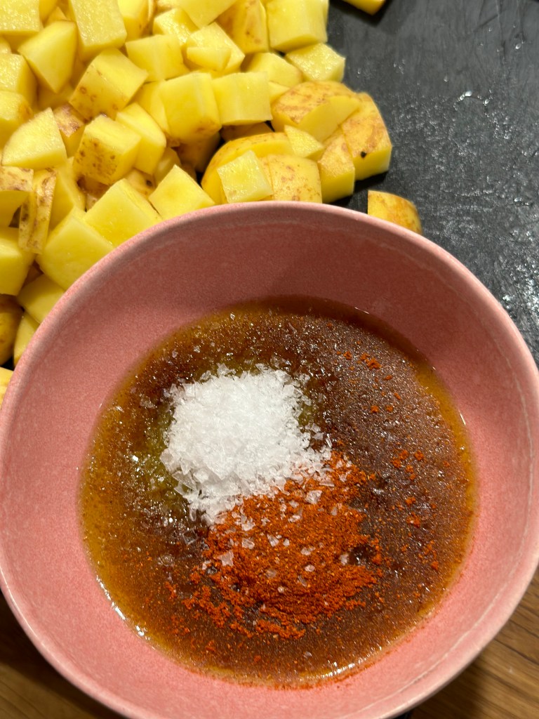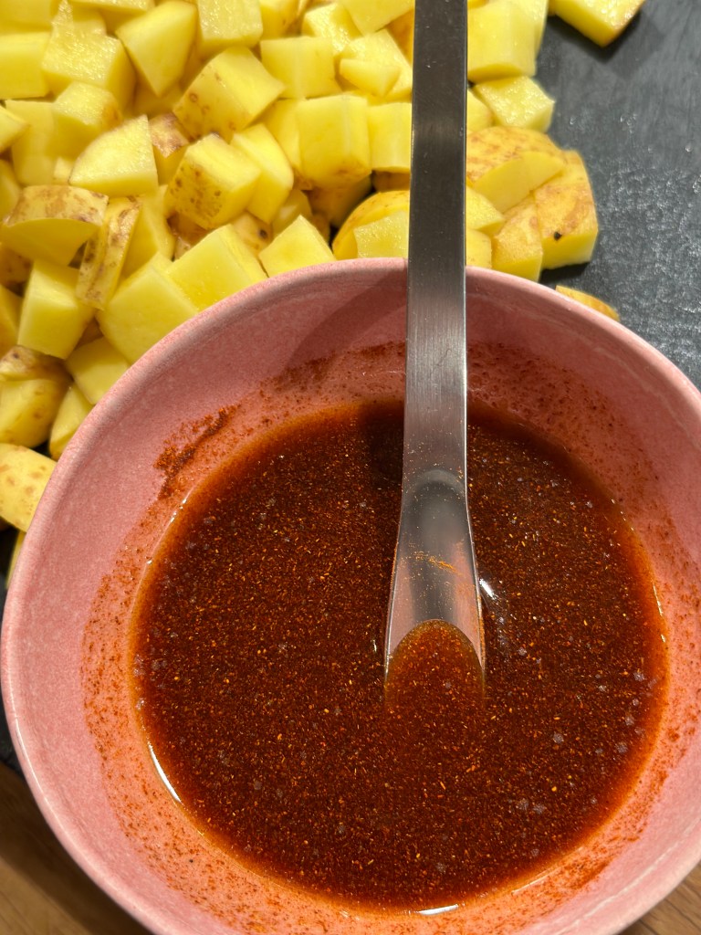 En simpel tapasret, som fungerer rigtig godt som tilbehør til alt kød eller grill. Den er nem at lave – i sær i en airfryer.