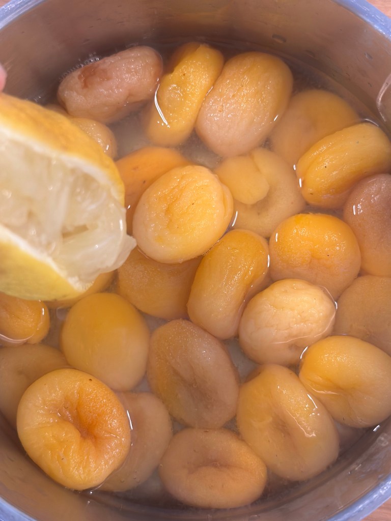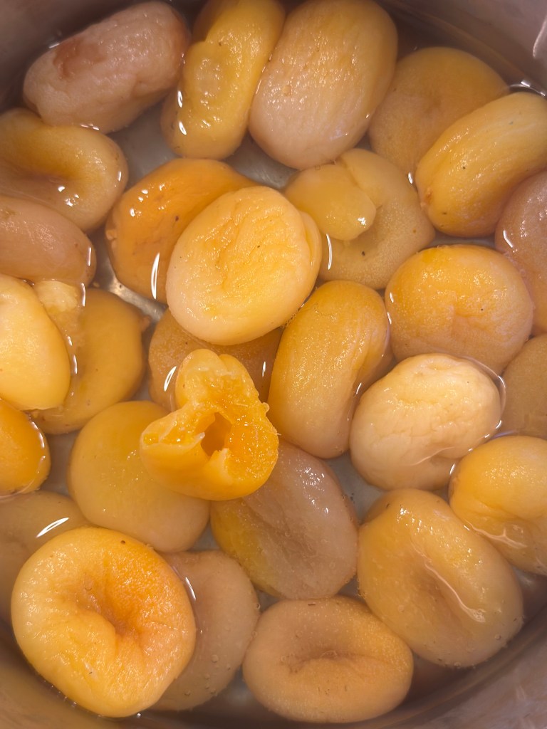 Jeg skulle egentlig bruge abrikos kompot til honninghjerter, men fandt ud af undervejs, at man faktisk får den skønneste – og sunde, marmelade.