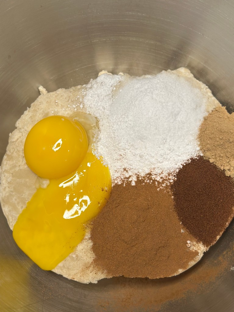 Fordejen er rigtig hård når den kommer ud af køleskabet. Det er normalt. Opløs potasken i lidt vand, og bland herefter alle ingredienserne. Den er hård for røremaskinen, og jeg starter med en dejkrog. Herefter ælter jeg i hånden, men det er hårdt arbejde. Der kommer nogle kemiske reaktioner når du blander dejen. Det er pga. hævemidlerne, og helt normalt. Når du ælter den på bordet, skal der drysses løbende med mel.