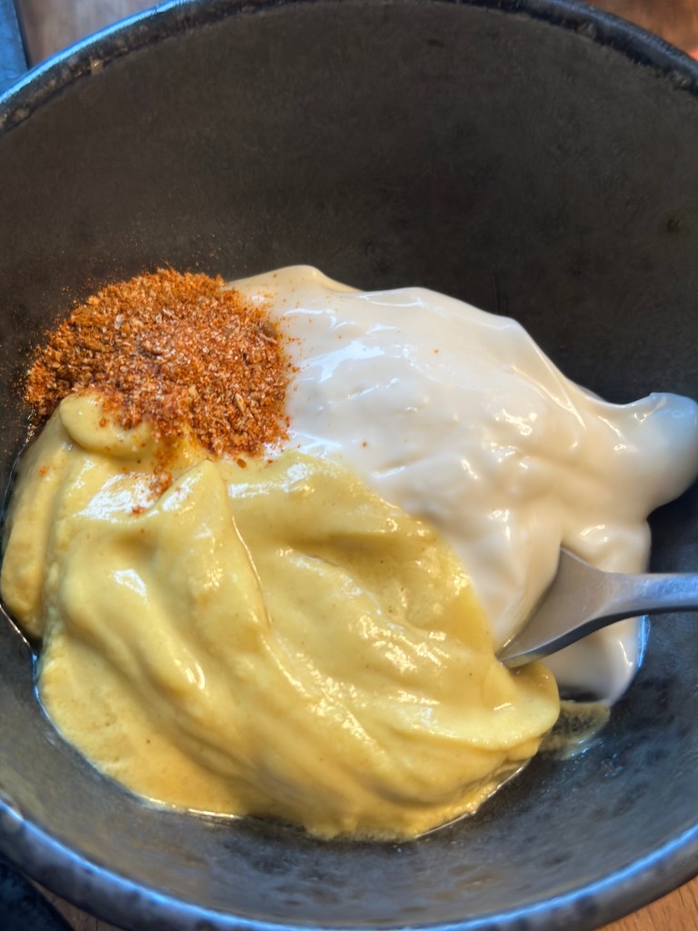 - Dijonnaise med allround (2 spsk Dijon, 2 spsk Mayonnaise og 1 tsk Allround krydderi).