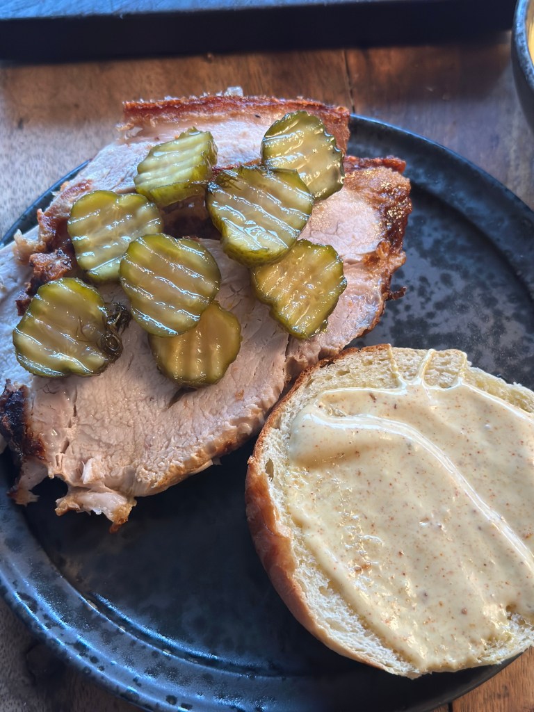 Jeg elsker en god flæskestegssandwich, men jeg gider ikke spise de dårligste eksempler. Stegen skal være lave saftig og mør – og sværene skal være sprøde. Og så skal der være et samspil imellem den rette mængde kød og fyld. Mange steder har misforstået mængden i en lille bolle – de tror det handler om store mænd skal mættes. Jeg støder derfor også ind i ellers lækre sandwich, som jeg ikke køber fordi jeg ikke gider have fyldet ud over mig – og slet ikke rødkål eller rødkålssaft.