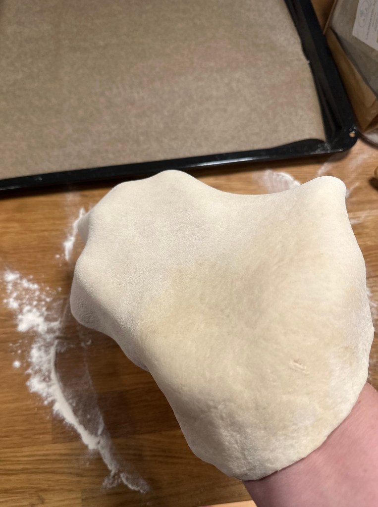 Det kommer 1 bradepande-pizza ud af denne mængde, så den skal være tynd.