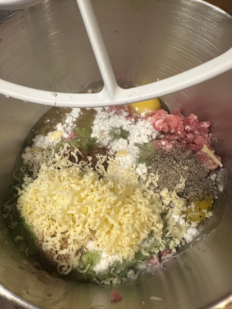 Herefter blander jeg alle ingredienserne i, og blander i en røremaskine. Den skal køres godt igennem, og kan virke lidt “fugtig”, men når den har stået i køleskab en halv times tid, så er den helt perfekt.