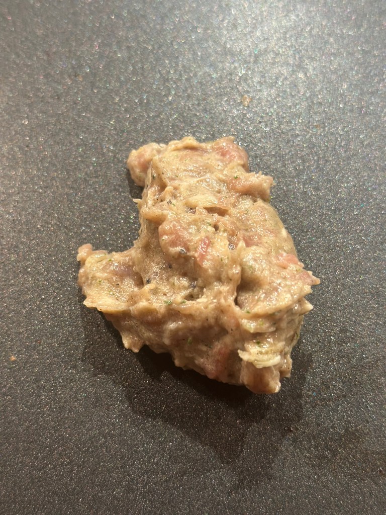 Den skal lige testes inden du laver pølser. Lav en frikadelle og steg på panden. Og smag herefter til .