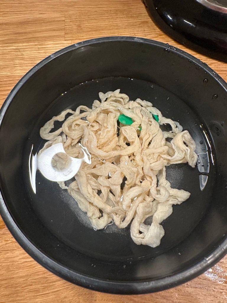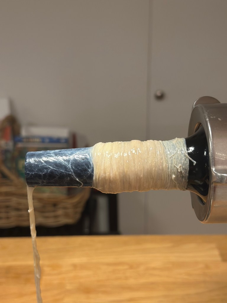 Jeg ved ikke om det hedder sådan, men jeg monterer den store tud på kødhakke-delen på min røremaskine. Jeg har købt svinetarm til medister, og den ligger i salt, som skal skylles af. Og så skal den ligge lidt i vand, for at komme lettere på tuden… Hmm. Skrev jeg virkelig det ?