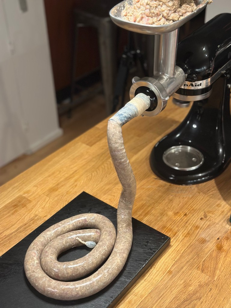 Så fik jeg taget mig sammen til både at få det rigtige udstyr, men også at komme i gang med pølseproduktionen – noget jeg har villet i mange år. Og jeg starter med medisteren.
