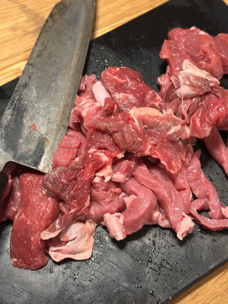 - 300 gram skært oksekød (fx. ribeye)