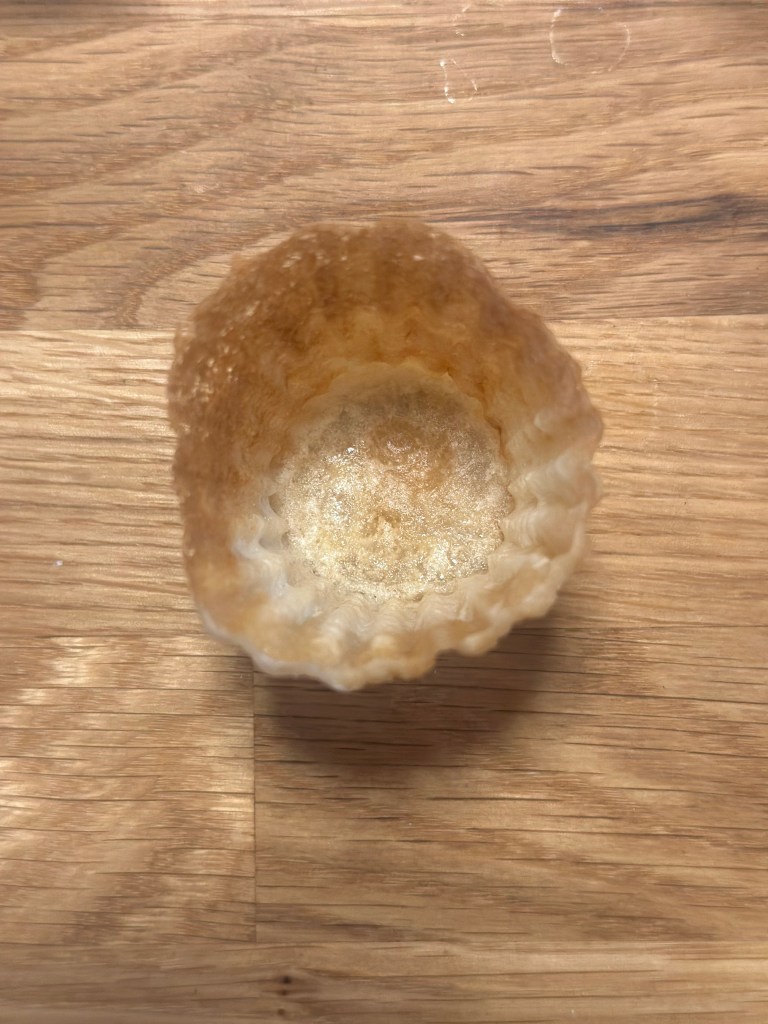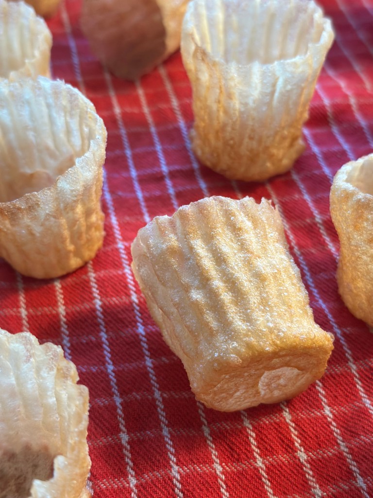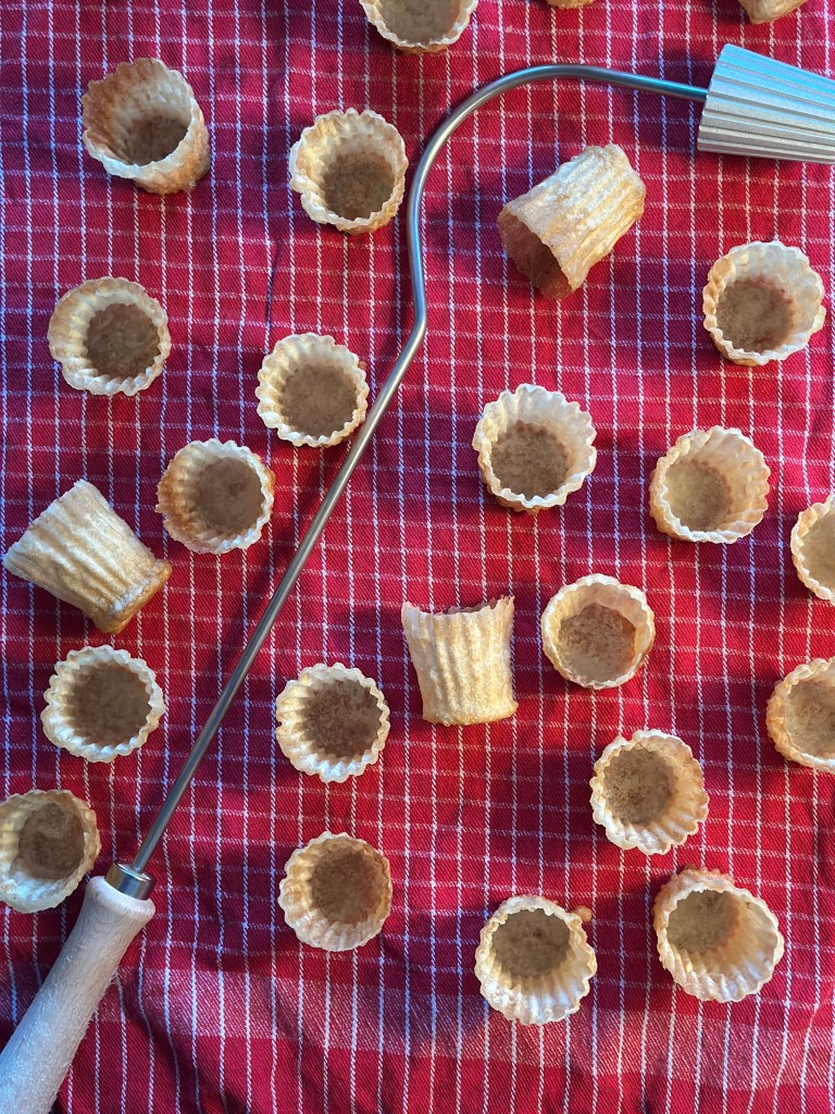 De små krustader jeg laver her, er kommet til i perioden 18-1900 tallet. De har udviklet sig fra ovenstående til mindre og mere elegante “hapsere”, hvor behovet opstod vi de store banketter. Jernet som jeg bruger er der ikke en bestemt opfindelsesdato på, men menes at være kommet til i takt med produktion af mad også blev industrialiseret.