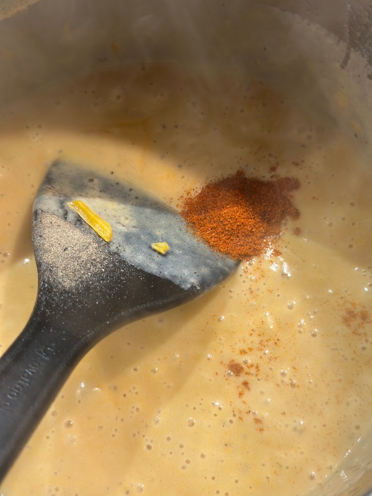 Du kan regulere tykkelsen igennem mere eller mindre cheddar – den fungerer virkeliggodt som nachos sauce, som burger sauce eller dip. Den smager bedst varm, hvis du spørger mig.