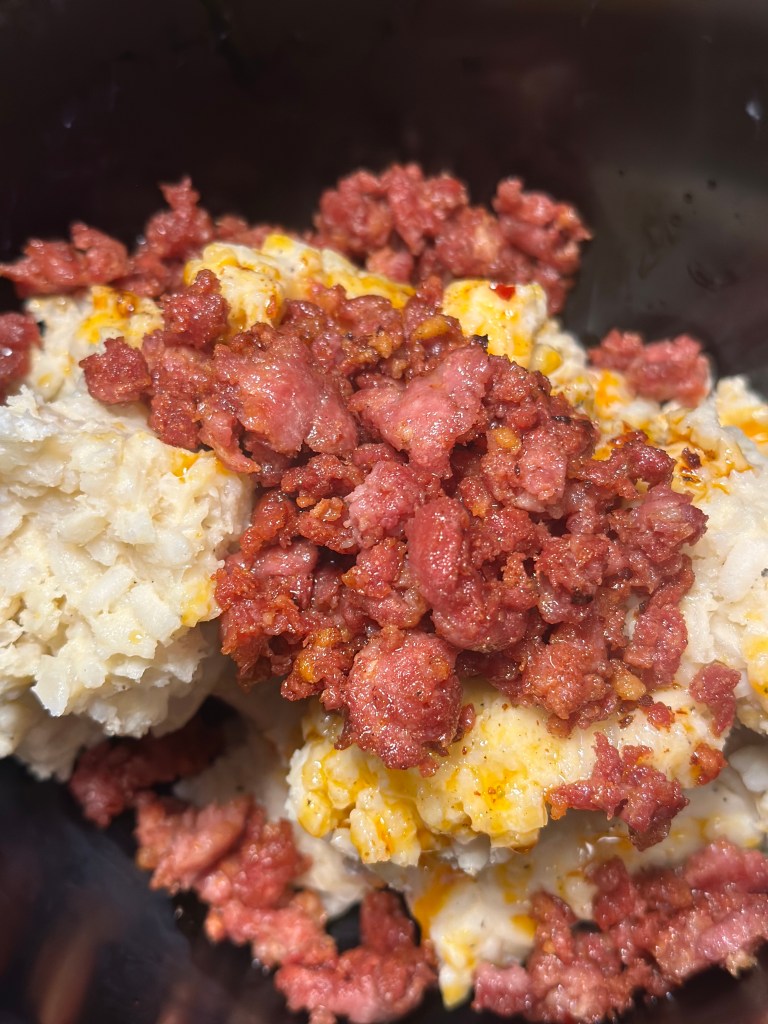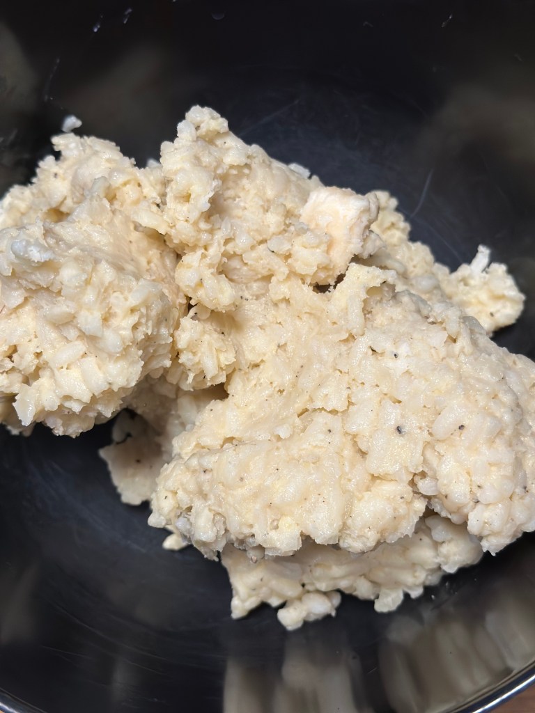 Her kommer en ret, som er den ultimative reste-ret… Den overskydende risotto gives nyt liv igennem Salsiccia pølse-kød, stegt i trøffelolie og krydret med Nduja paste. Paneret i panko og stegt i friture.