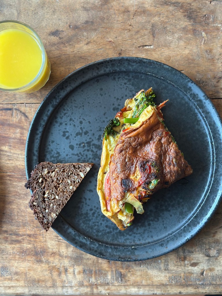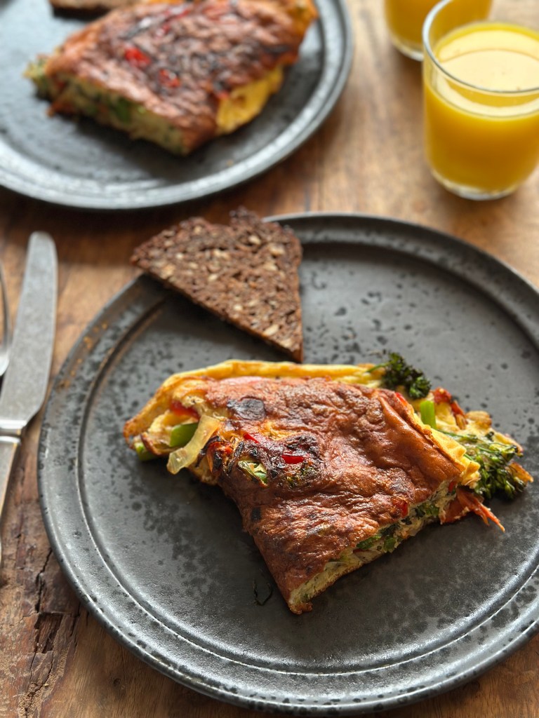 Spis gerne et godt stykke rygbrød til og et glad friskpresset appelsinjuice – og med en halv æggekage, har du fået under 400 kalorier.