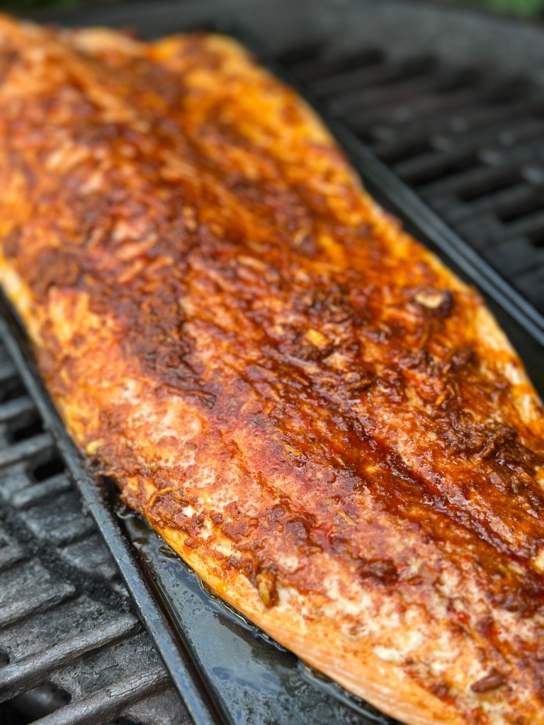 En lakseside er ikke det nemmeste at lave på en grill, fordi den er tynd i den ene ende, og tyk i den anden. I princippet skal den habe forskellig varme. Omvendt, så er der forskel på folk – nogle vil gerne have laksen gennemstegt, hvor andre vil have den lidt rå i midten. Så hvis du går efter en kerne temperatur på 45 på det tykkeste sted, så rammer du ikke helt galt.