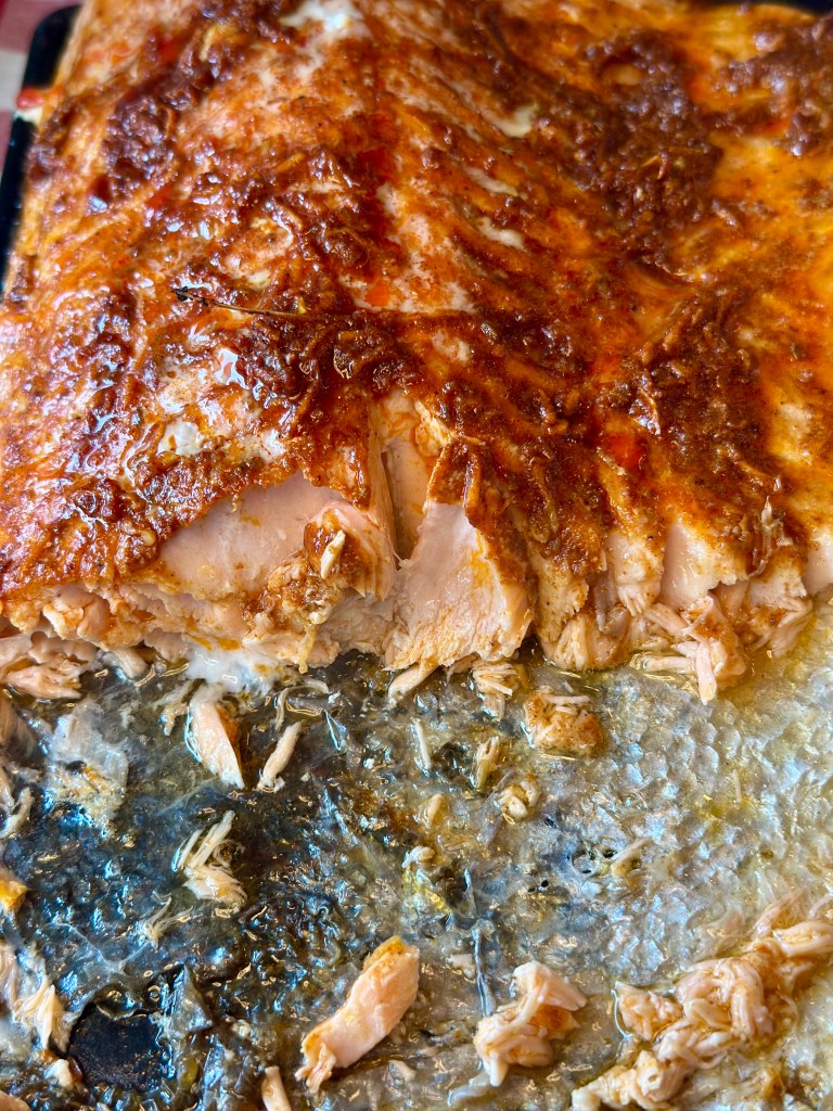 Jeg lægger iøvrigt laksen på en stegeplade, smurt i rapsolie.