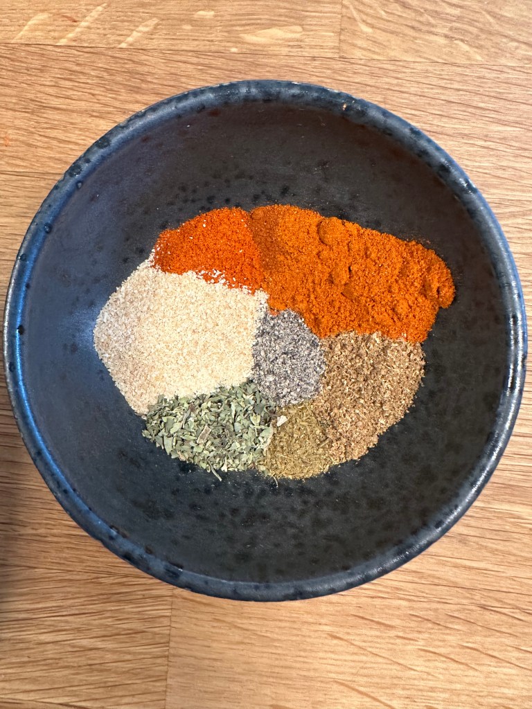 Gyros er faktisk også lavet på et roterende spyd, men herhjemme oplever vi det ligeså ofte på grillspyd eller blot stegt på grillen. Min krydderi opskrift er denne: