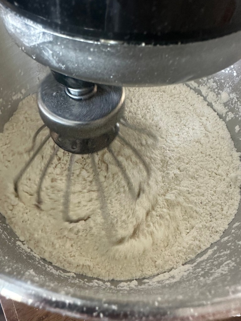 Bland først alle tør-elementerne med et piskeris. Skrift herefter til dejkrogen og tilsæt vandet. Lunkent vand skal være kogt og kølet ned til finger-temperatur – tag aldrig varmt vand fra hanen.