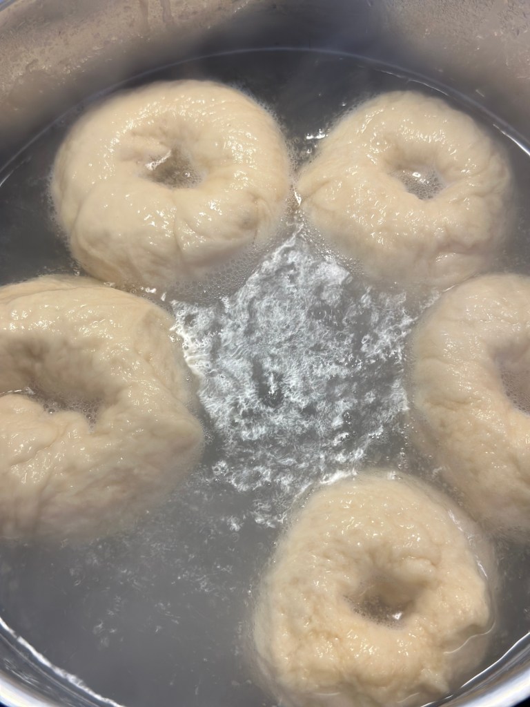 Jeg har lært at lave bagels igennem en teknik, som netop giver den klassiske tekstur og smag. Melet med et højt protein indhold er også vigtigt. Jeg bruger derfor AMO STRONG.