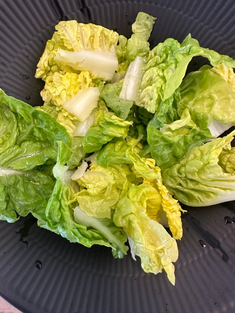Romaine (Vi kalder den det samme): En salat med lange, mørkegrønne blade og en let pebret smag.