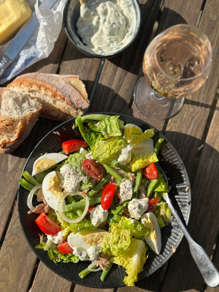 Og lad det være sagt med det samme – man kan ikke kalde den for “nicoise” ude nicoise oliven, men sådan bliver det alligevel. For “nicoise” også nemlig også Nice, hvor den oprindelig stammer fra.