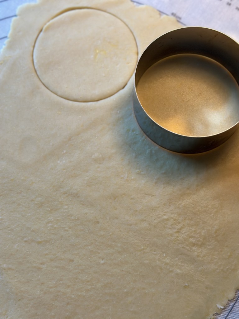 Når dejen er lun, så bliver den lidt for blød st arbejde med. Det kan være nødvendigt at komme den på køl inden du ruller den ud, eller ruller den ud igen – for at bruge hele dejen, vil du rulle den ud mindst 3 gange. Men vær opmærksom på tykkelsen skal være den samme, så anden og tredje udrulning bliver ikke til kanten.
