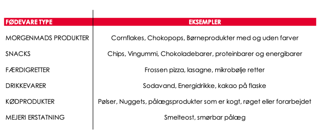 Ifølge NOVA-klassifikationen (anerkendt internationalt) er ultraforarbejdede fødevarer produkter følgende