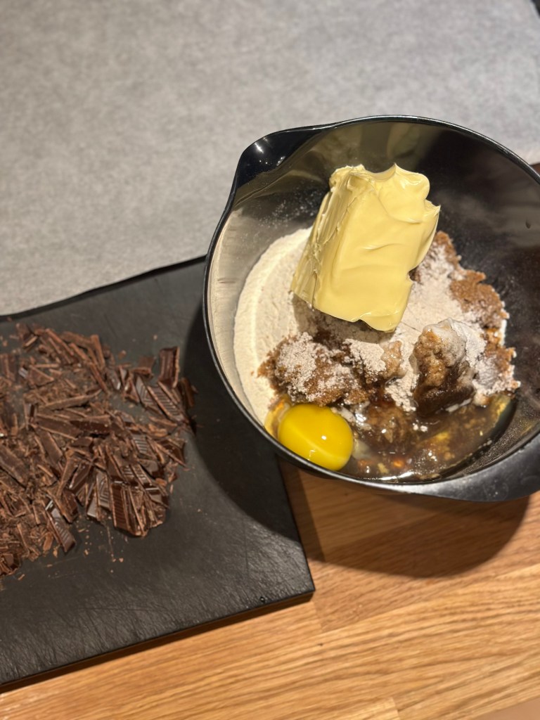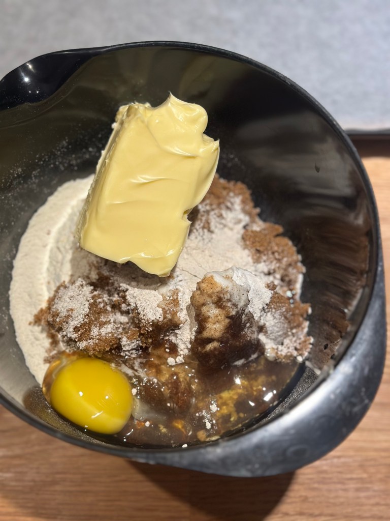 Det hele blandes i en skål med hånden. Sørg for smøret er blødt.