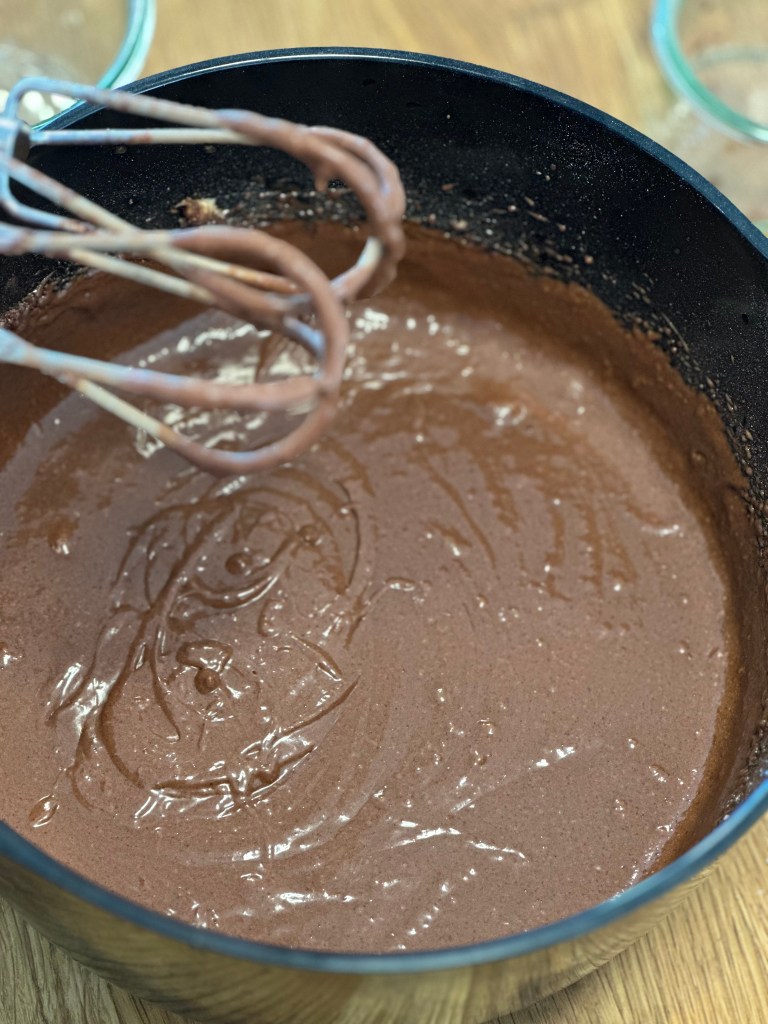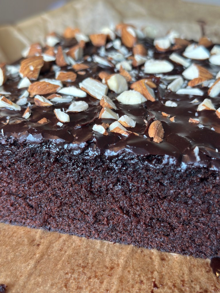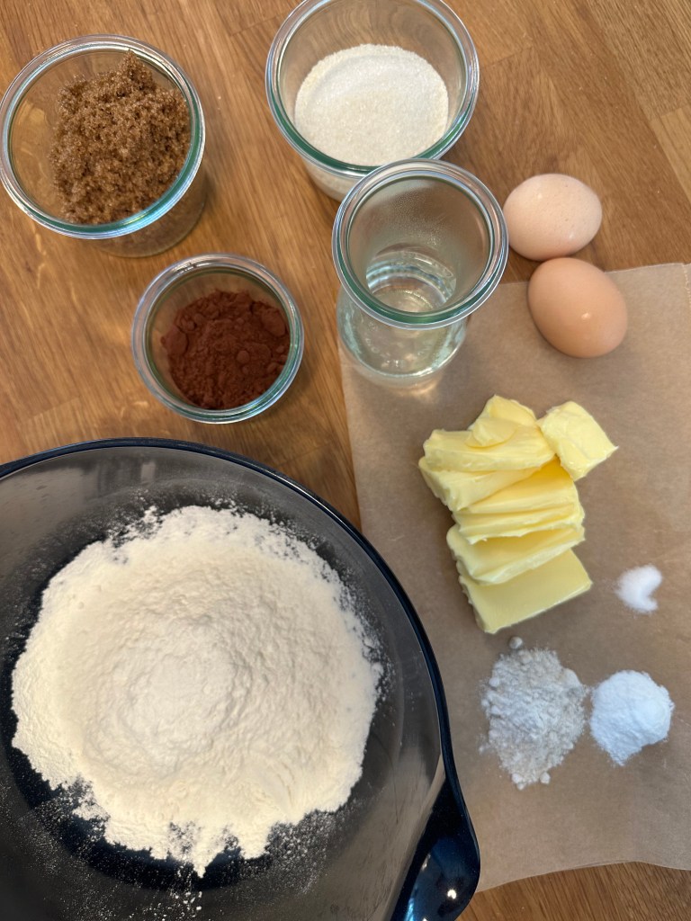 Dette er sådan en klassisk “klassens time kage”, hvor der er kælet lidt for ingredienserne og ikke mindst metoden. Det giver en svampet og virkelig smagfuld chokolade smag – lige noget for mig.