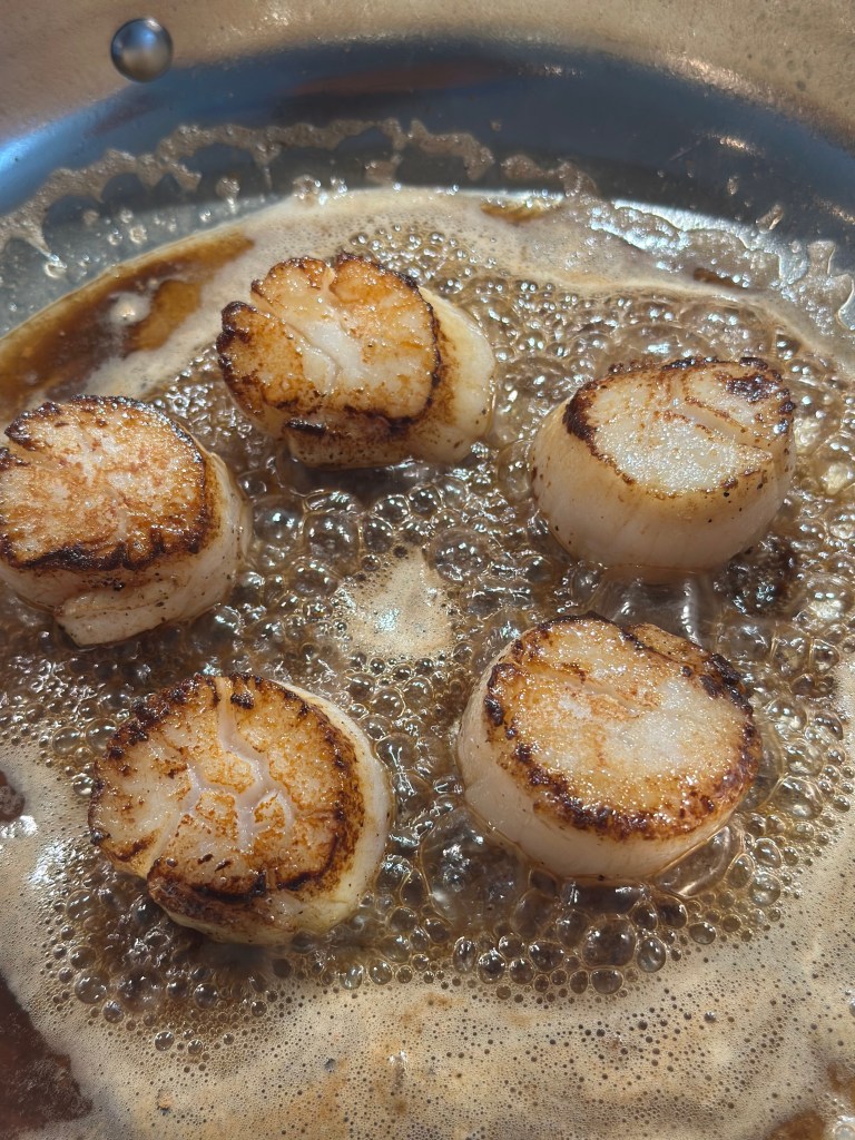 Og måden man gør det på, at varm pande, brunet smør og så kort stegetid.