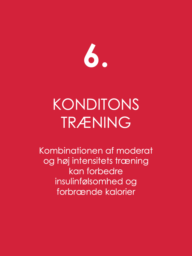 6. KONDITIONSTRÆNING Kombination af moderat og højintens træning kan forbedre insulinfølsomhed og forbrænde kalorier.