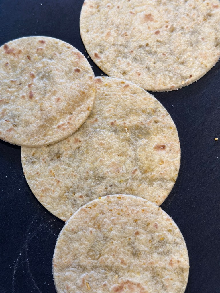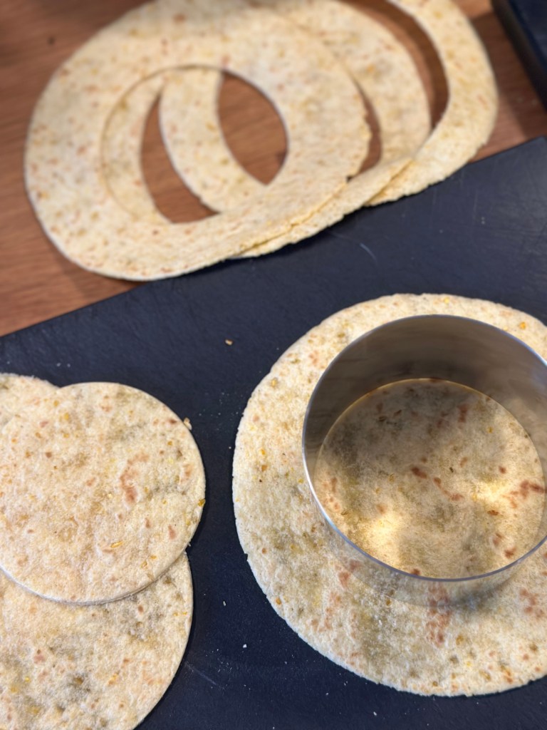 Jeg køber blot nogle tortillas, og udstikker dem. Disse er 6 og 8 cm, men du kan vælge den størrelse du ønsker.