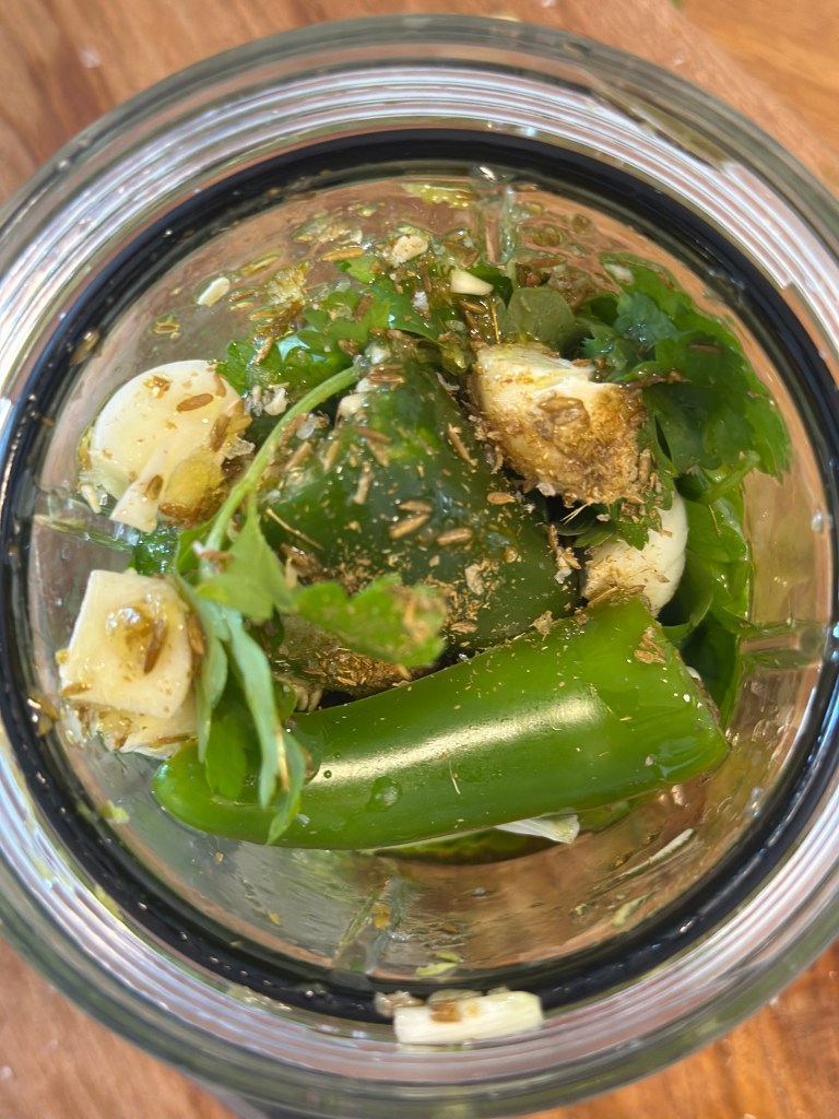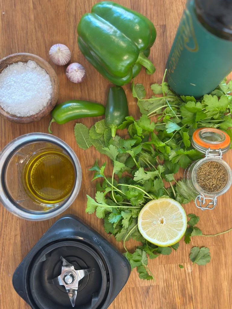 - Grøntsager og urter (jalapeño, grøn peberfrugt, koriander, persille, mynte) giver vitaminer, mineraler, antioxidanter og fibre.