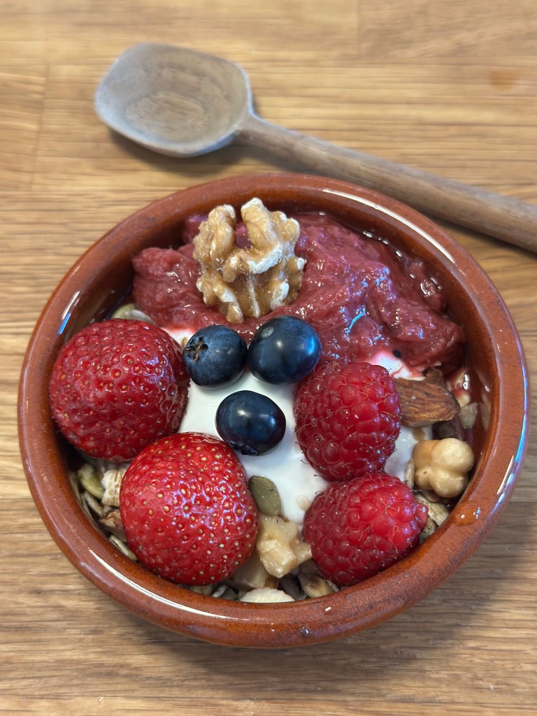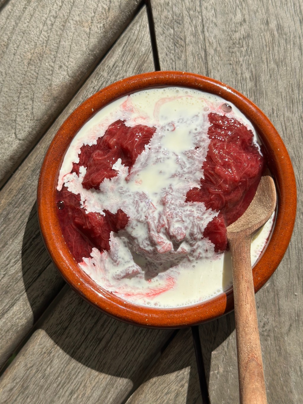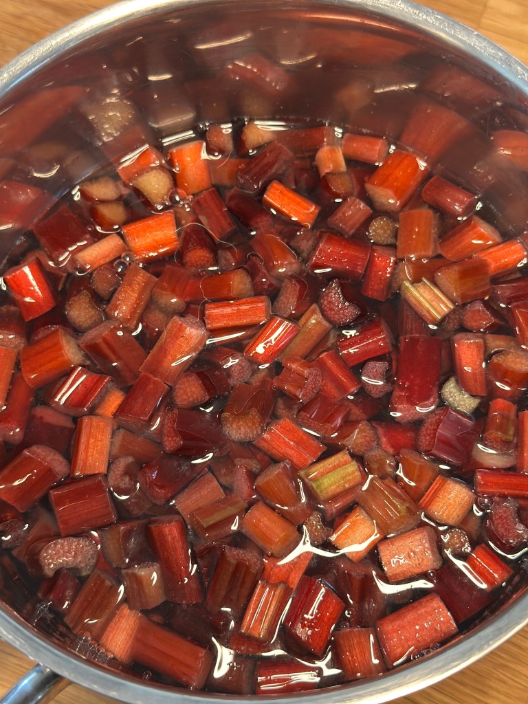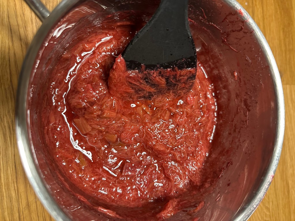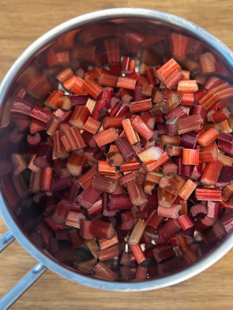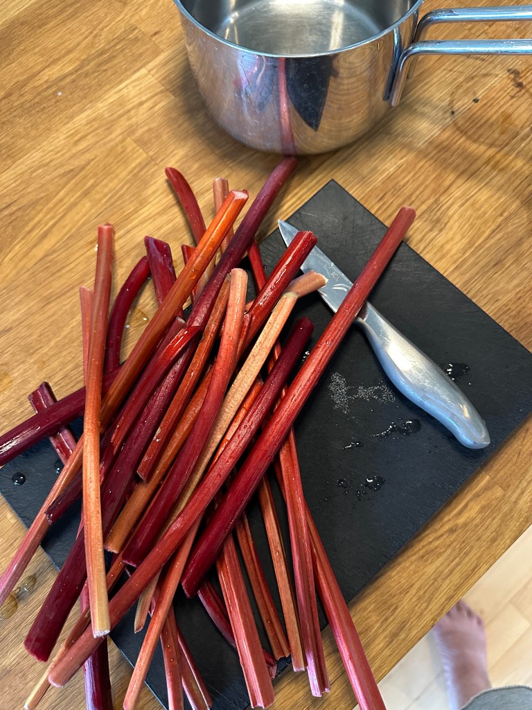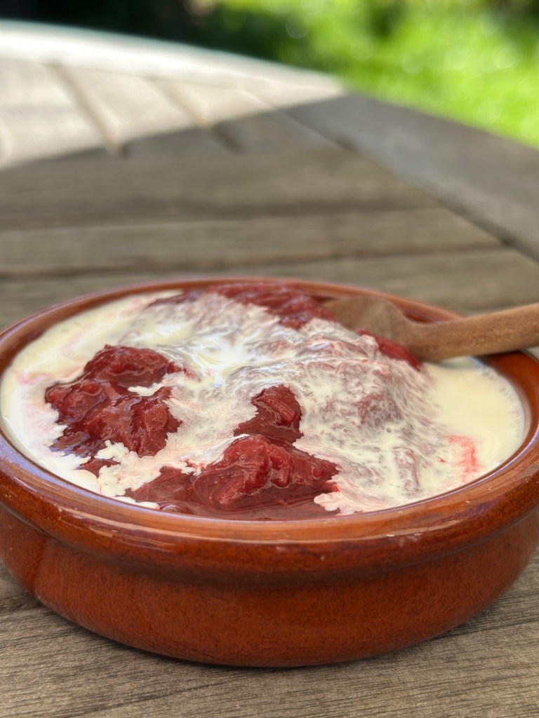 Dette er smagen af sommer, og rabarber grød er både sundt og velsmagende. Nogle laver den som rødgrød sammen med andre bær – og sådan en opskrift kan du også finde her på siden, men denne gang skulle jeg prøve med rabarber fra egen have.