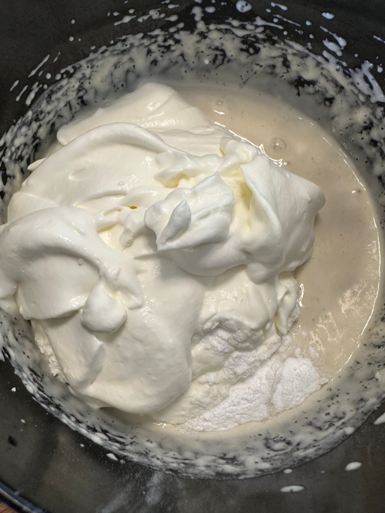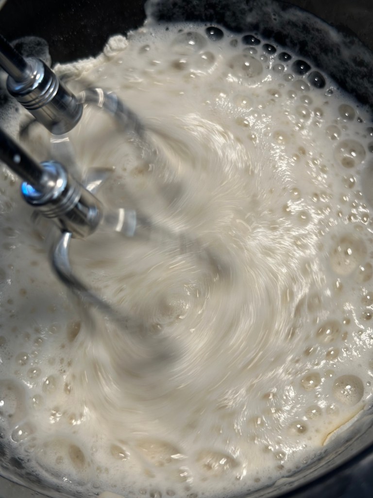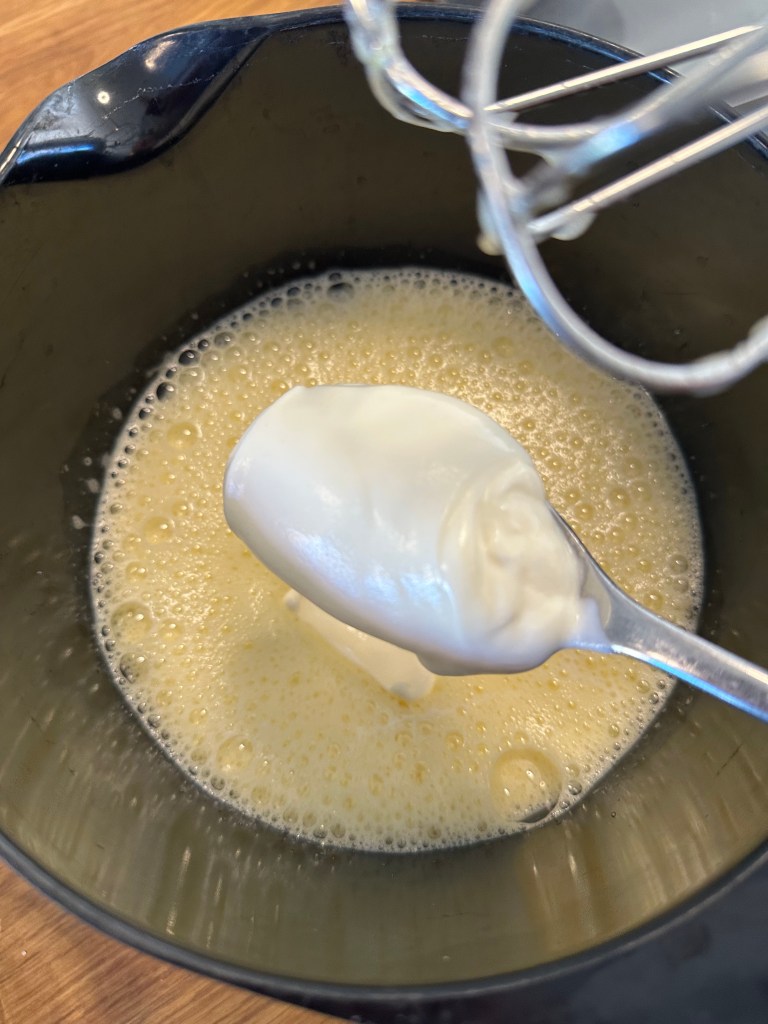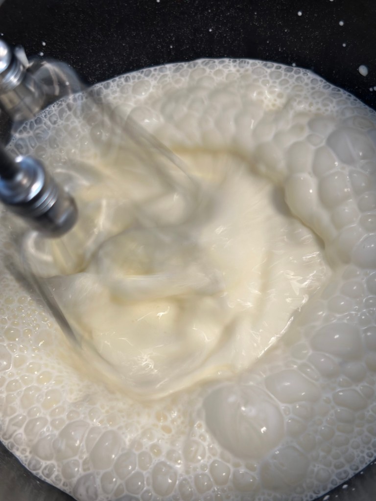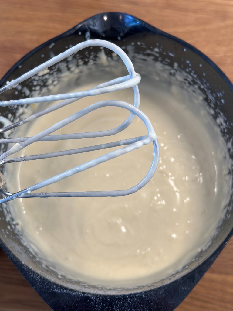 - Tilsæt kærnemælk og creme fraiche, rør godt.