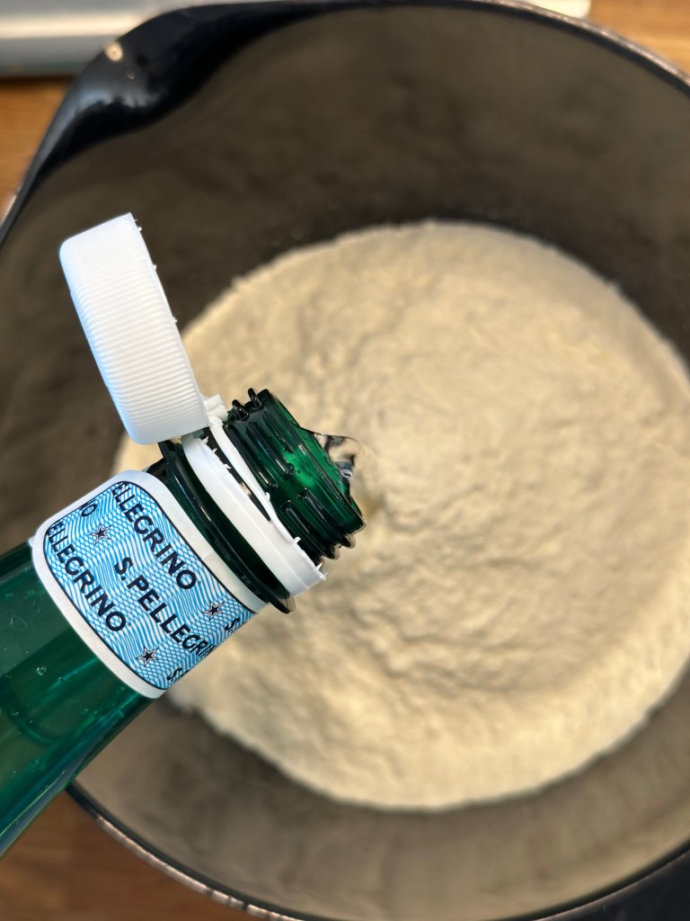 - Pisk det kolde vand i lidt ad gangen, så du får en jævn dej.