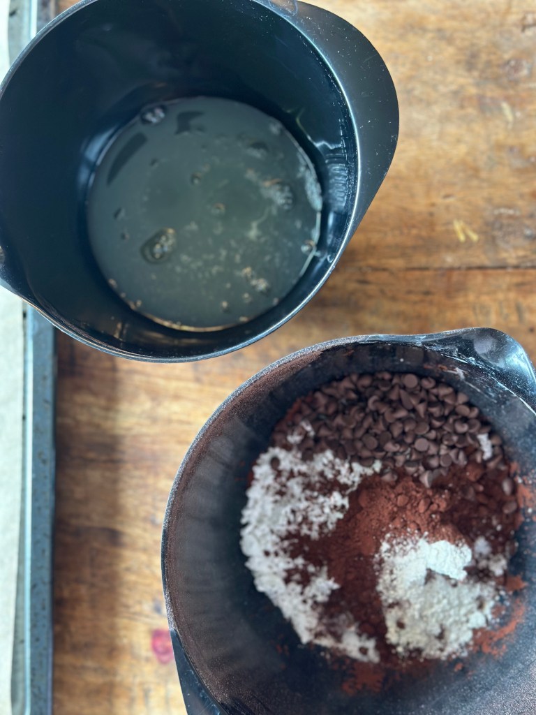 Ovnen skal være forvarmet til 170 grader varmluft, og kagerne skal have ca. 12 minutter – måske kun 10 alt efter ovnen. De er bløde når de kommer ud, så de skal hvile nogle minutter.