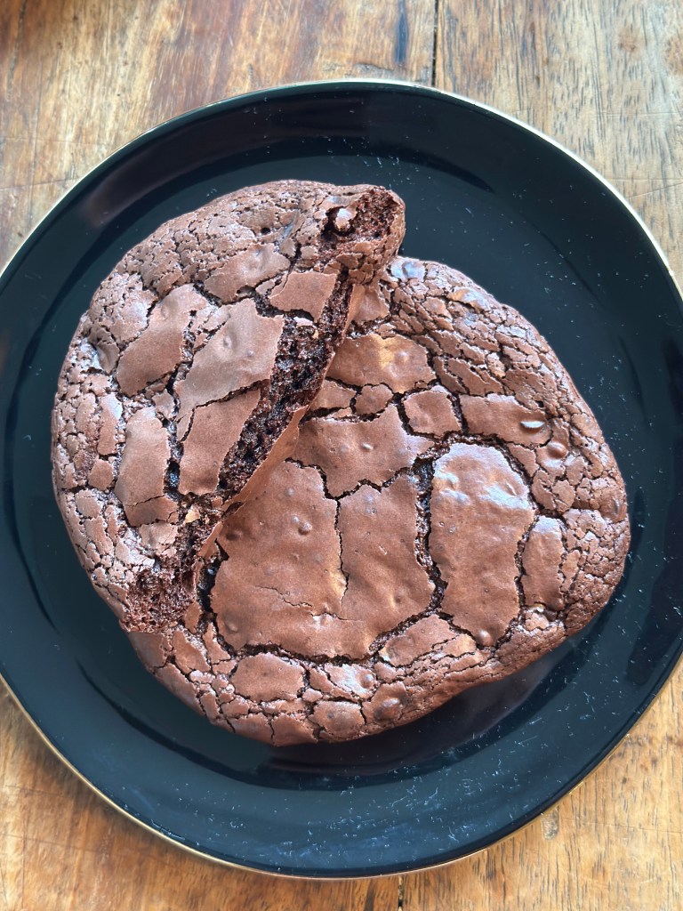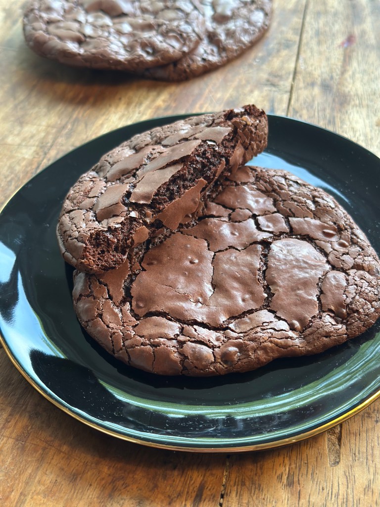 Denne version, har jeg fået af min søn, som har set den på tiktok. Og jeg elsker når han giver mig opskrifter, som jeg skal prøve at lave. Så her kommer min version på nogle helt vildt usunde cookies, men tøj hvor de smager godt med en sprød og blank overflade, men helt chewy inden i.