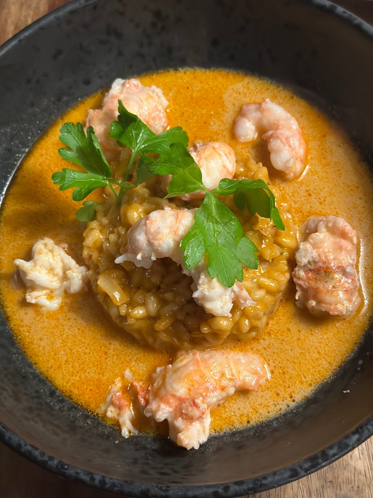Server med et godt stykke brød – eller sammen med min jomfruhummerhale bisque risotto. Ser opskriften på risotto her !